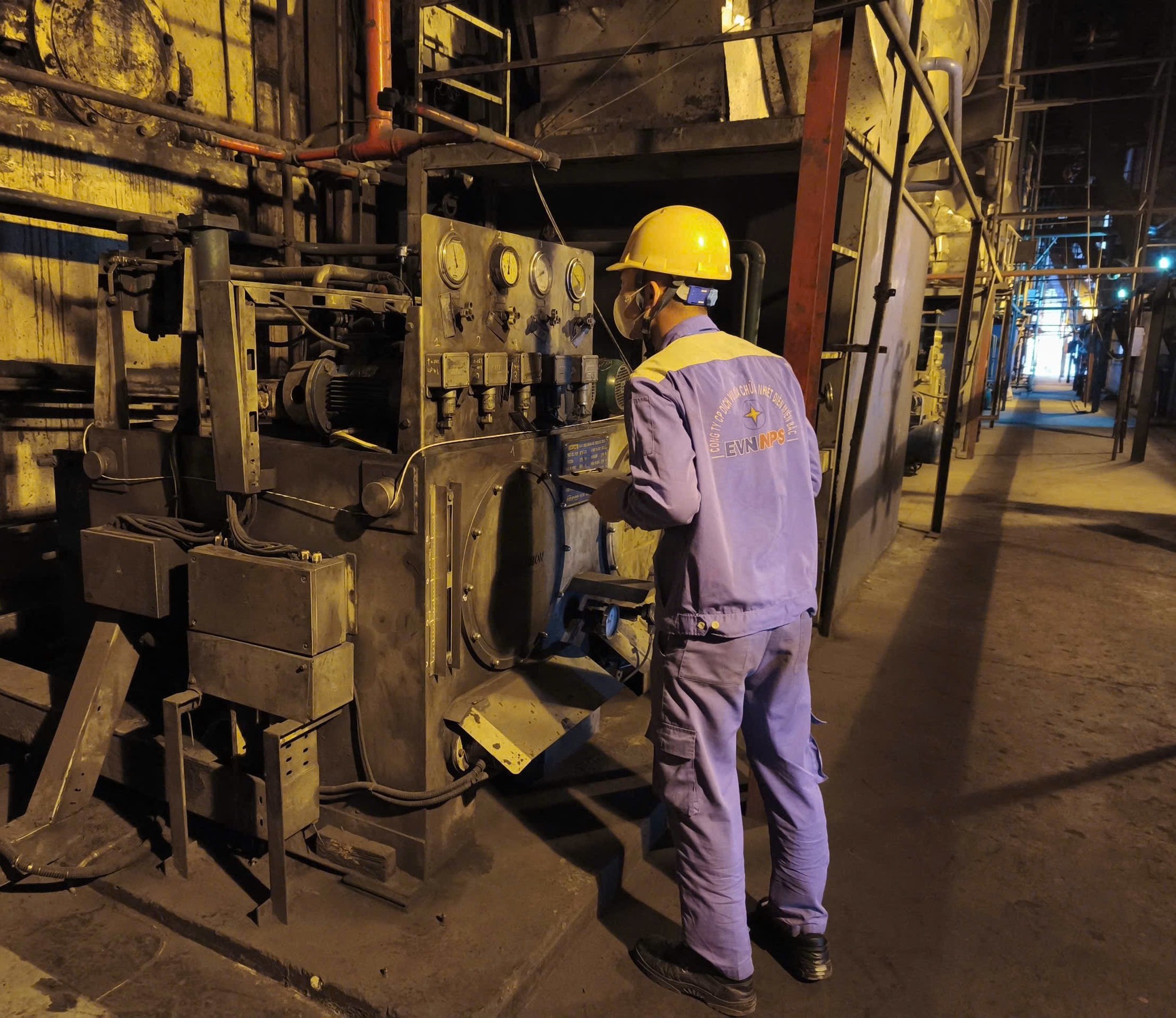 Kỹ sư EVNNPS tiến hành kiểm tra thông số vận hành tại bảng điều khiển cơ khí cục bộ
